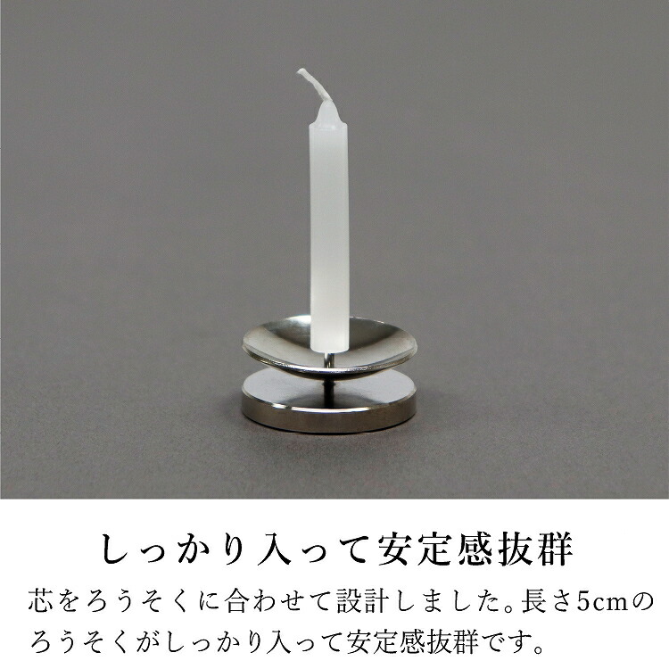 日本製のローソク立てです。長さ5cmローソクが根元までしっかり入り、最後の一滴まで完全燃焼するように設計しました。ロウが残らないので掃除の手間がかかりません。火立に入れてお使いください。全宗派対応「ローソク立て芯 シルバー」現代仏壇