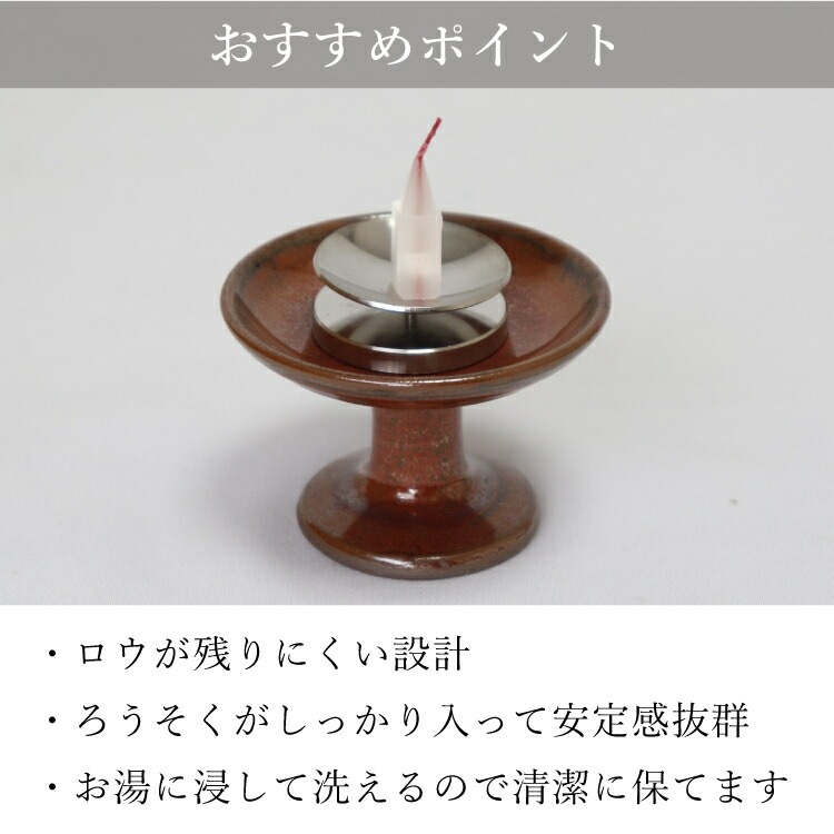 - ローソク立て芯は熱くなります。必ず仏具に置いてご使用ください。