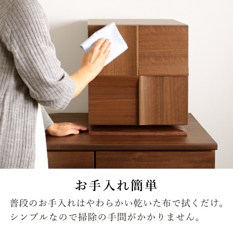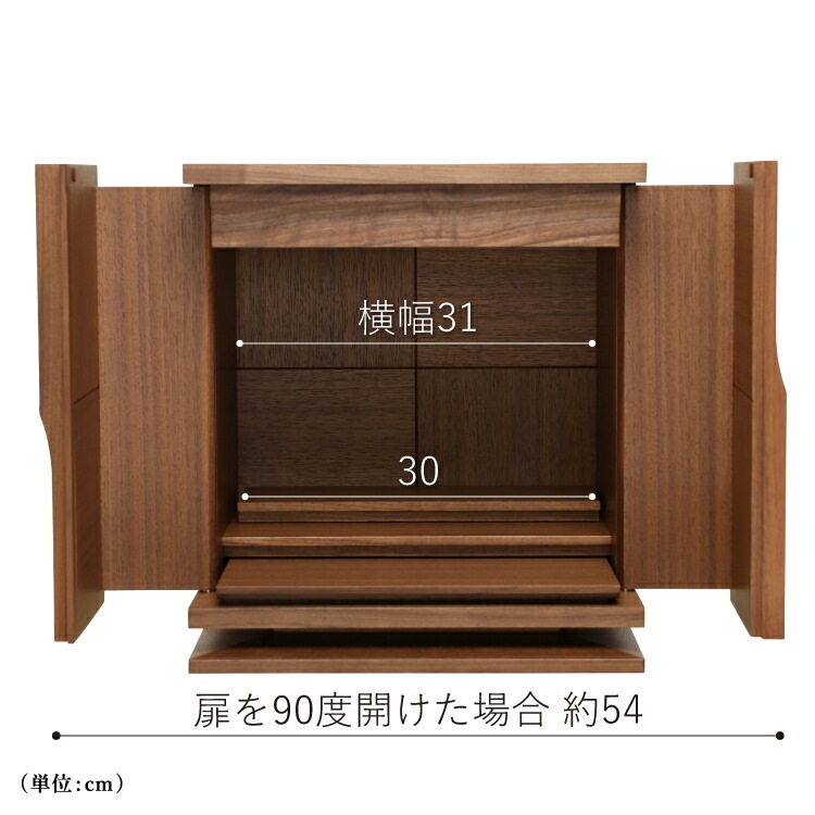 - おしゃれなモダン仏壇です。リビングやマンションに合うミニ仏壇。小さいながら開けると開放的な空間が広がり、仏具をのせて動かせるスライド式須弥壇が便利です。