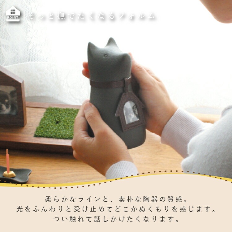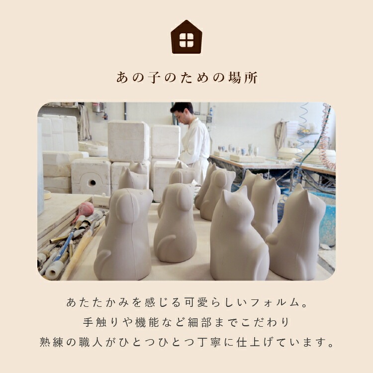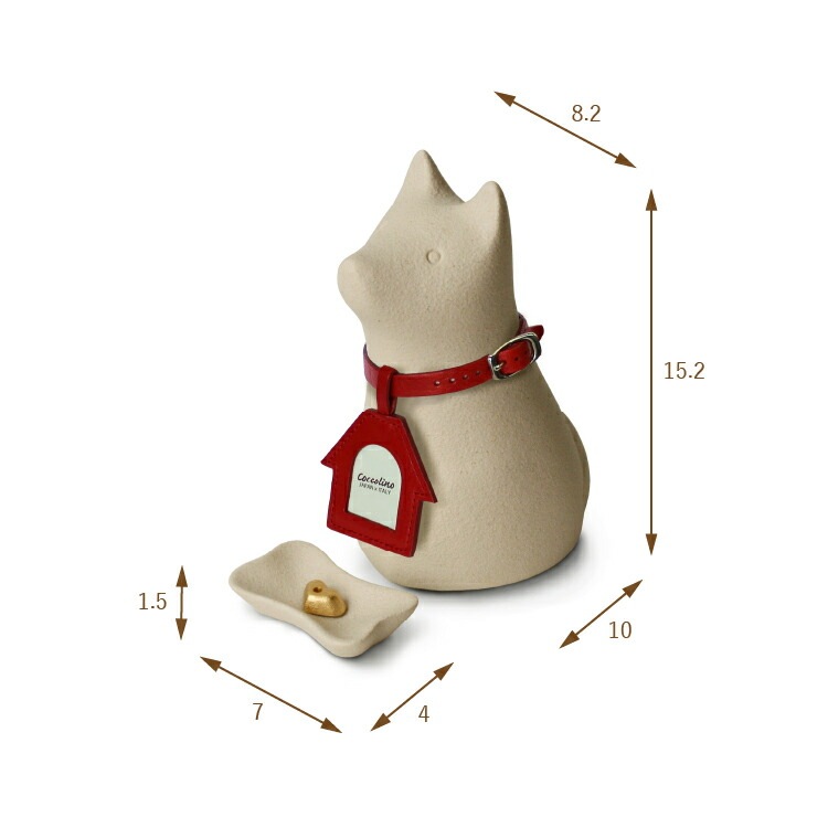 - かわいいペット骨壺です。犬ちゃん型のおしゃれなイタリア製。ご遺骨をミニ骨壺に納めて供養できます。香皿、香立、線香ローソク、内袋、首輪、写真チャーム付き。