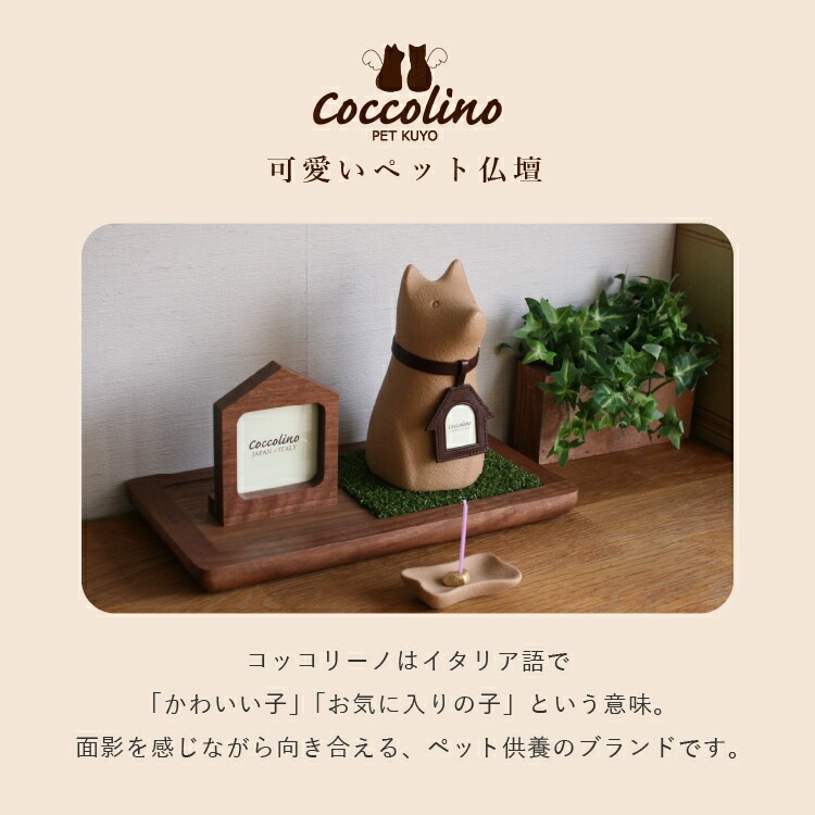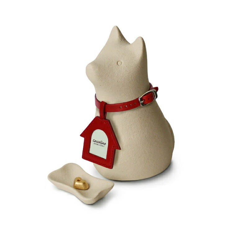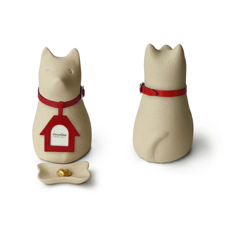 かわいいペット骨壺です。犬ちゃん型のおしゃれなイタリア製。ご遺骨をミニ骨壺に納めて面影を偲びながらペット供養できます。香皿、香立、線香ローソク、内袋、首輪、写真チャーム付き。送料無料「ワンチョA」 コッコリーノ Coccolino