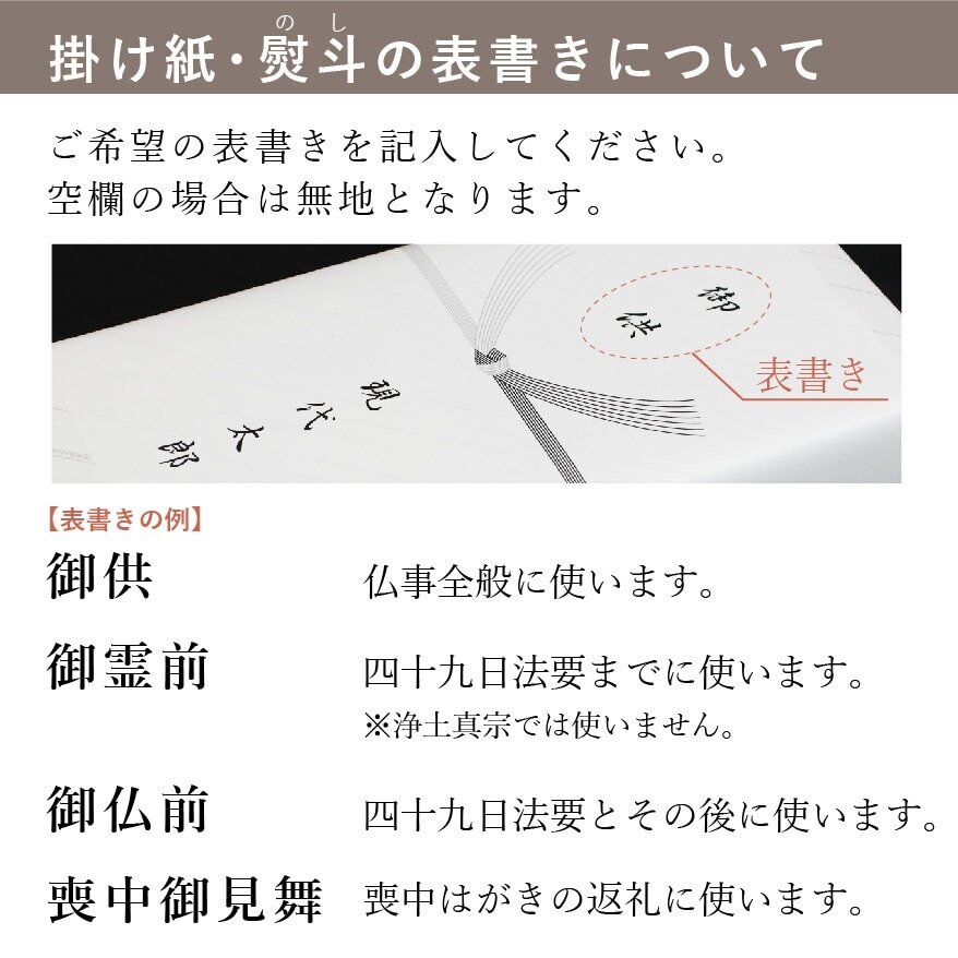 掛け紙に記載する「表書き」 ※空欄の場合は無地になります