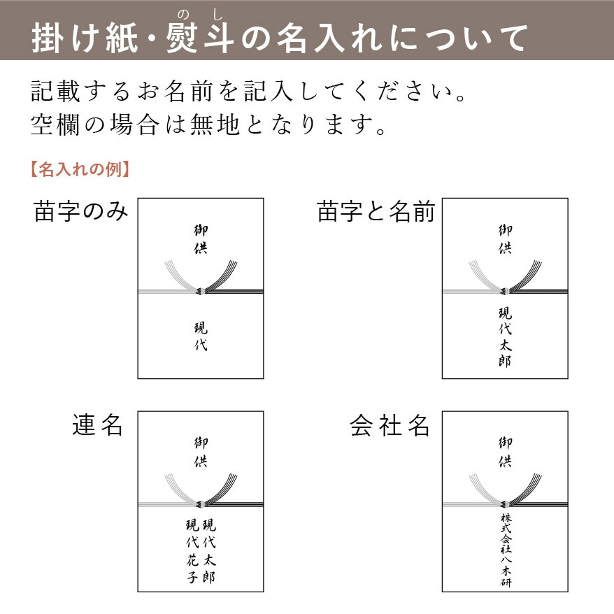 掛け紙に記載する「お名前」 ※空欄の場合は無地になります