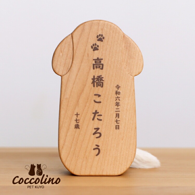 かわいい犬型のペット位牌です。小さいので仏壇や骨壺、メモリアルグッズのそばに置きやすく、大切なワンちゃんのお名前と写真を入れて本格的にペット供養できます。名入れ代込み。送料無料「ピコ ワンチョB」コッコリーノ Coccolino