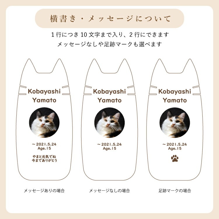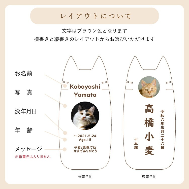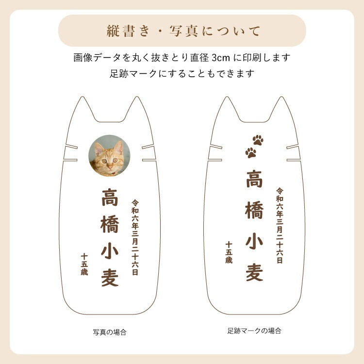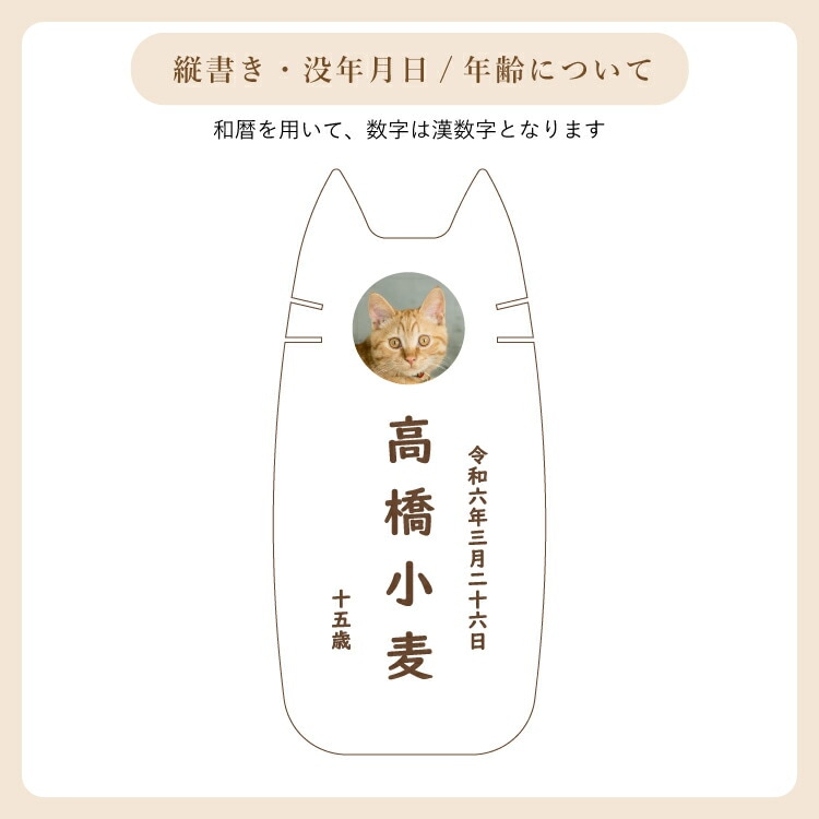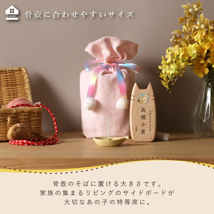 - かわいい猫型のペット位牌です。小さいので仏壇や骨壺、メモリアルグッズのそばに置きやすく、大切なネコちゃんを本格的にペット供養できます。名入れ代込み。