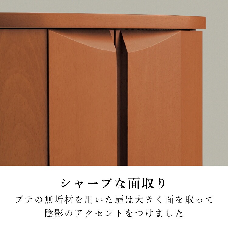 - おしゃれなモダン仏壇です。日本製の高い品質と無垢材の扉がリビングやマンションにワンランク上のインテリア空間を演出。仏具をのせて動かせる須弥壇が便利です。