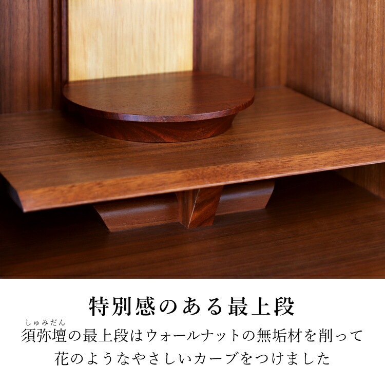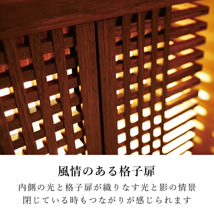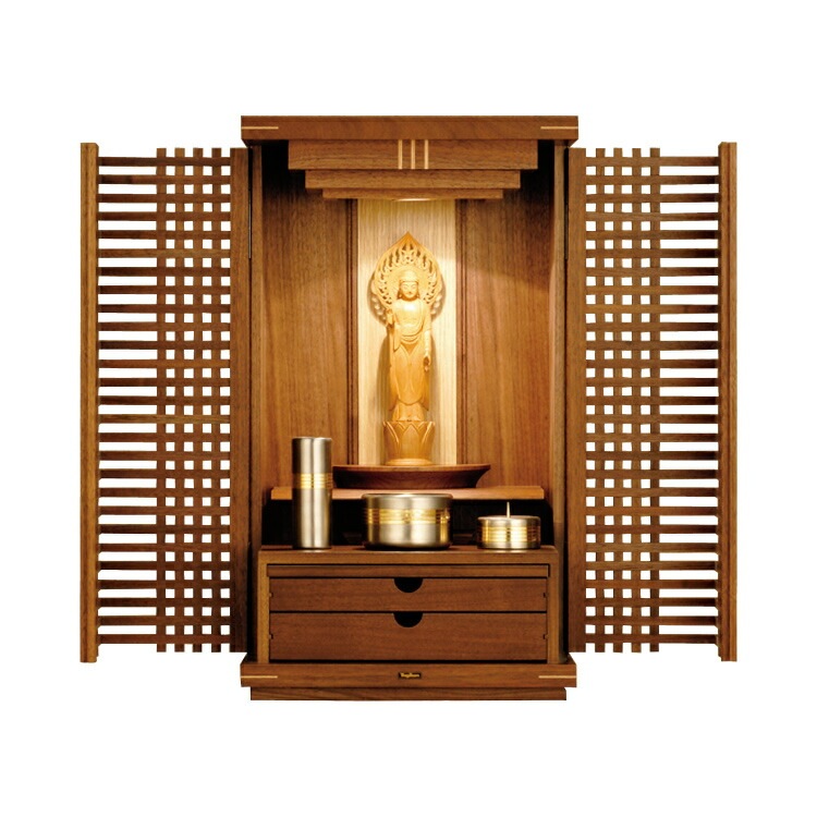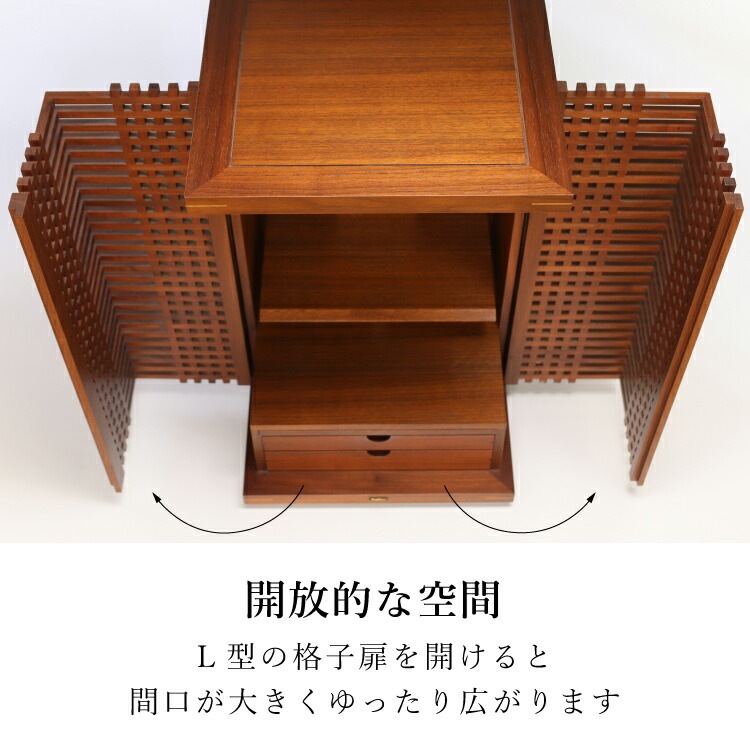 - おしゃれなモダン仏壇です。コンパクトな上置き仏壇なのでリビングやマンションに置きやすく、日本製ならではの精緻な格子扉が内と外の空間を優しく繋げます。