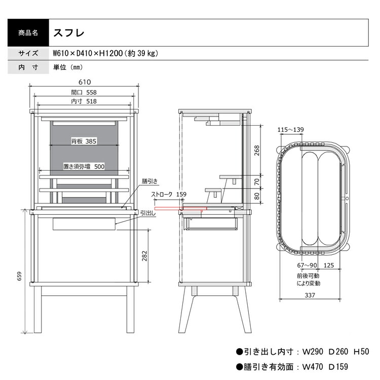 - 幅61cm 奥行41cm 高さ120cm
