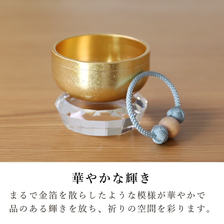 - シンプルな形のおりんです。富山県の伝統工芸「高岡銅器」により制作された安心の日本製で、チーンと澄んだ音色が心地よく響きます。りん棒とりん台は別売りです。