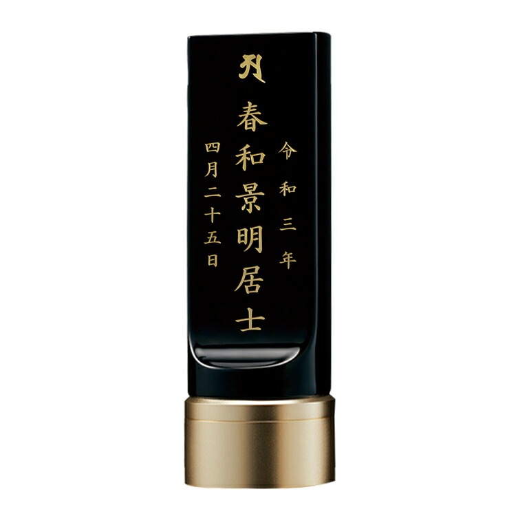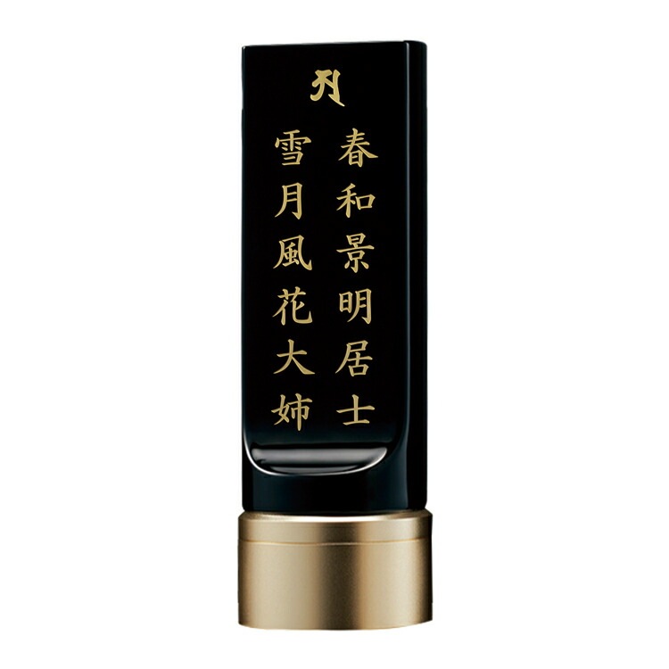 隠し収納付きのモダン位牌です。おしゃれなシャンパンゴールドの台座に指輪など小さいものを納められます。夫婦位牌の名入れもできるのでミニ仏壇やコンパクトな手元供養にも最適です。文字入れを別途承ります。位牌本体と同じカートで文字入れをご注文ください。天台宗・真言宗・日蓮宗・浄土宗・浄土真宗本願寺派(西本願寺)・真宗大谷派(東本願寺)・臨済宗・曹洞宗の全宗派、無宗教に対応。日本製「テゾーロ ブラック 4寸」現代仏壇