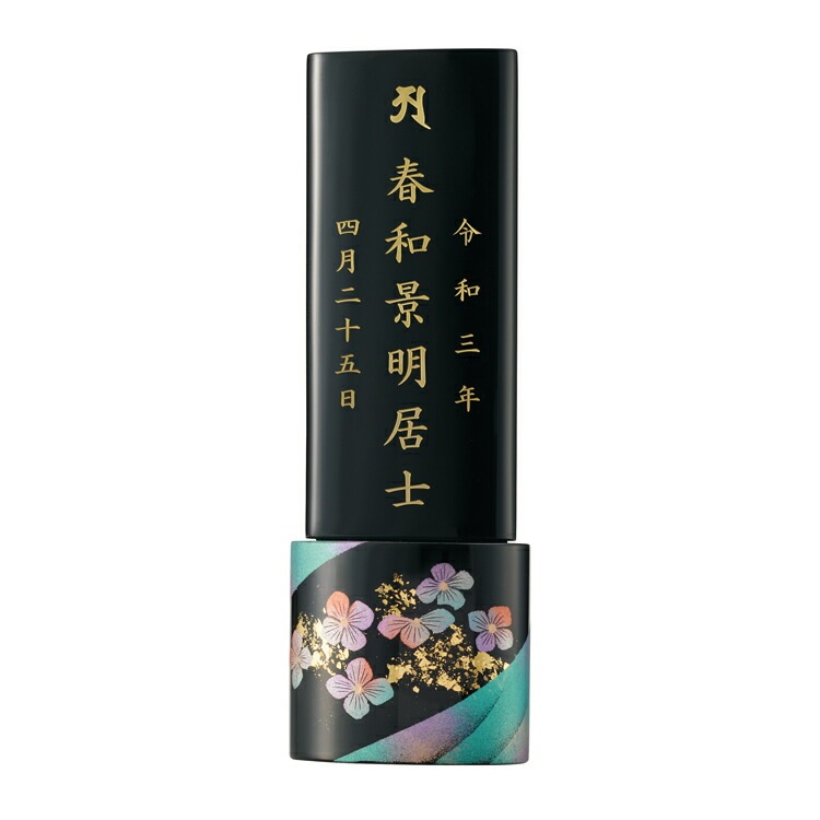 輪島塗のおしゃれなモダン位牌です。台座の曲面にかわいいアジサイの花を描きました。名入れ、文字入れを別途承ります。位牌本体と同じカートで文字入れをご注文ください。天台宗・真言宗・日蓮宗・浄土宗・浄土真宗本願寺派(西本願寺)・真宗大谷派(東本願寺)・臨済宗・曹洞宗の全宗派、無宗教に対応。日本製「レテ 4.5寸」現代仏壇
