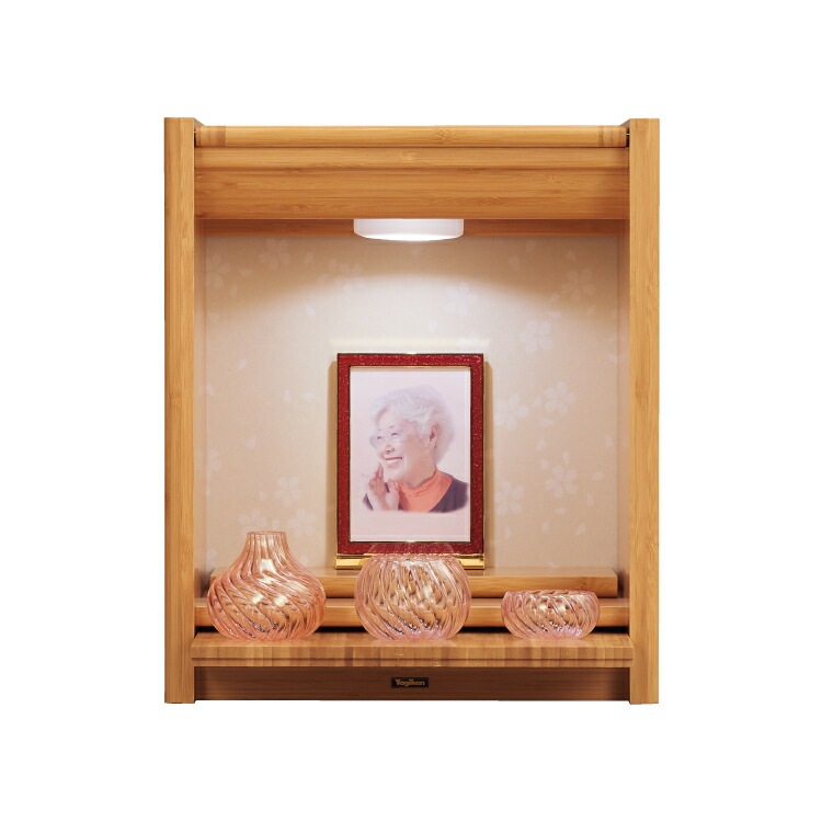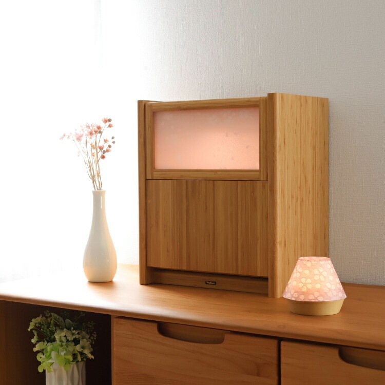 - おしゃれなモダン仏壇です。リビングやマンションに置きやすいミニ仏壇。扉に桜模様が浮かび上がり日本製ならではの和モダンなデザインにぬくもりが感じられます。
