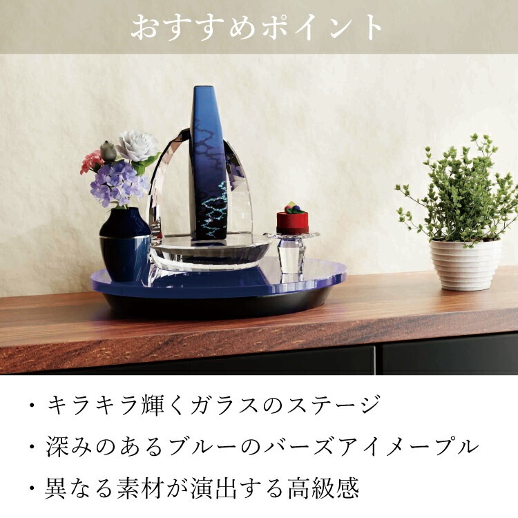 - おしゃれなモダン仏壇です。小さいオープンタイプなのでリビングやマンションに置けて、ガラスの輝きが上質なインテリア空間を演出します。手元供養にもおすすめ。