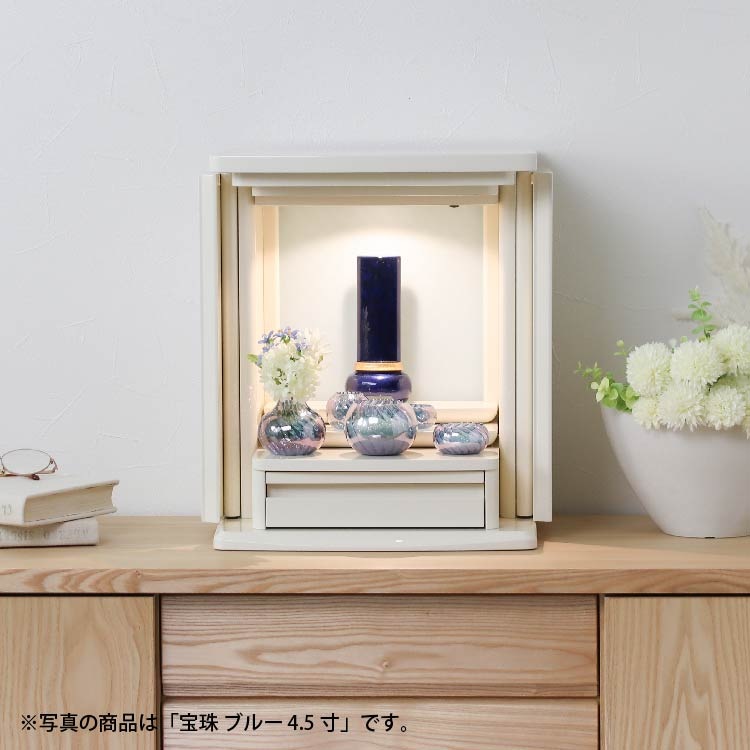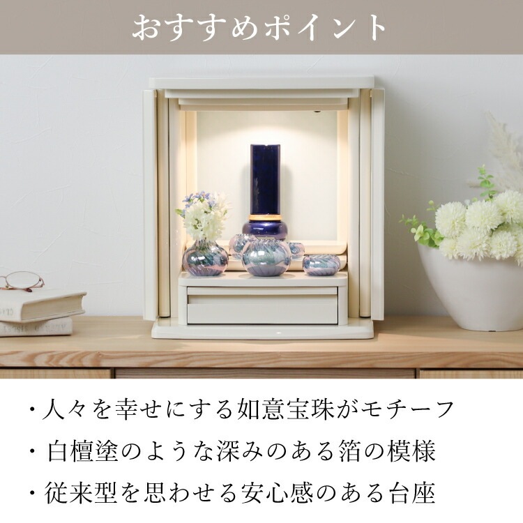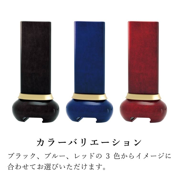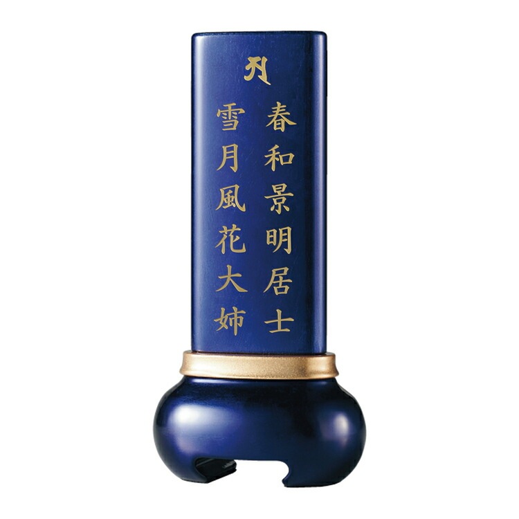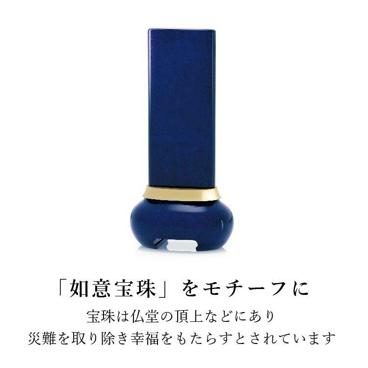 宝珠がモチーフのモダン位牌。塗装の奥深くから金属箔の模様が浮かび上がります。洗練された雰囲気と高級感のあるおしゃれなデザイン。コンパクトで夫婦位牌の名入れができるので小さい仏壇や手元供養にも最適。文字入れを別途承ります。位牌本体と同じカートで文字入れをご注文ください。天台宗・真言宗・日蓮宗・浄土宗・浄土真宗本願寺派(西本願寺)・真宗大谷派(東本願寺)・臨済宗・曹洞宗の全宗派、無宗教に対応。日本製「宝珠 ブルー 3.5寸」現代仏壇