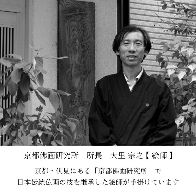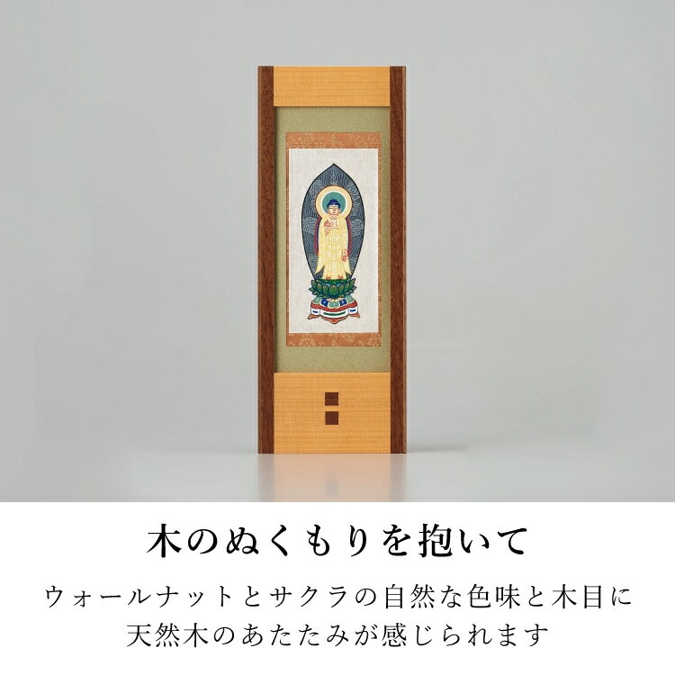 - おしゃれなモダン掛軸です。天然木を用いた日本製のフレームに京都の絵師が手描きした仏画をセットしました。自立型だから安置が簡単でモダン仏壇にぴったりです。